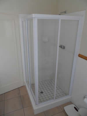 Supply and install folding door with toplight and corner entry shower door.